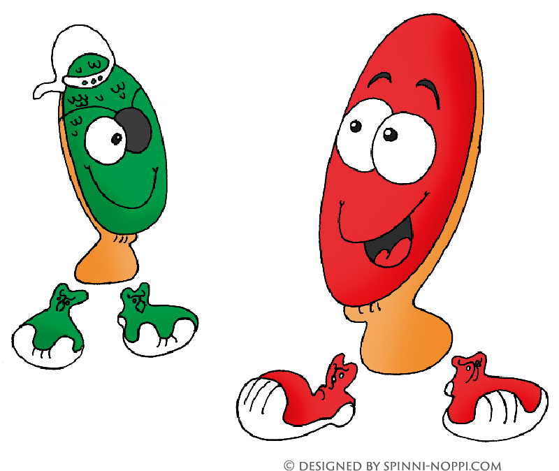 Für ihre Namen – wie soll es anders sein – stand der unter anderem wichtigste Gegenstand für das Tischtennisspiel Pate – der Schläger. Zum einem in der Ausführung mit Spin-Belag „SPINNI“ und natürlich mit Noppen-Belag „Noppi“.